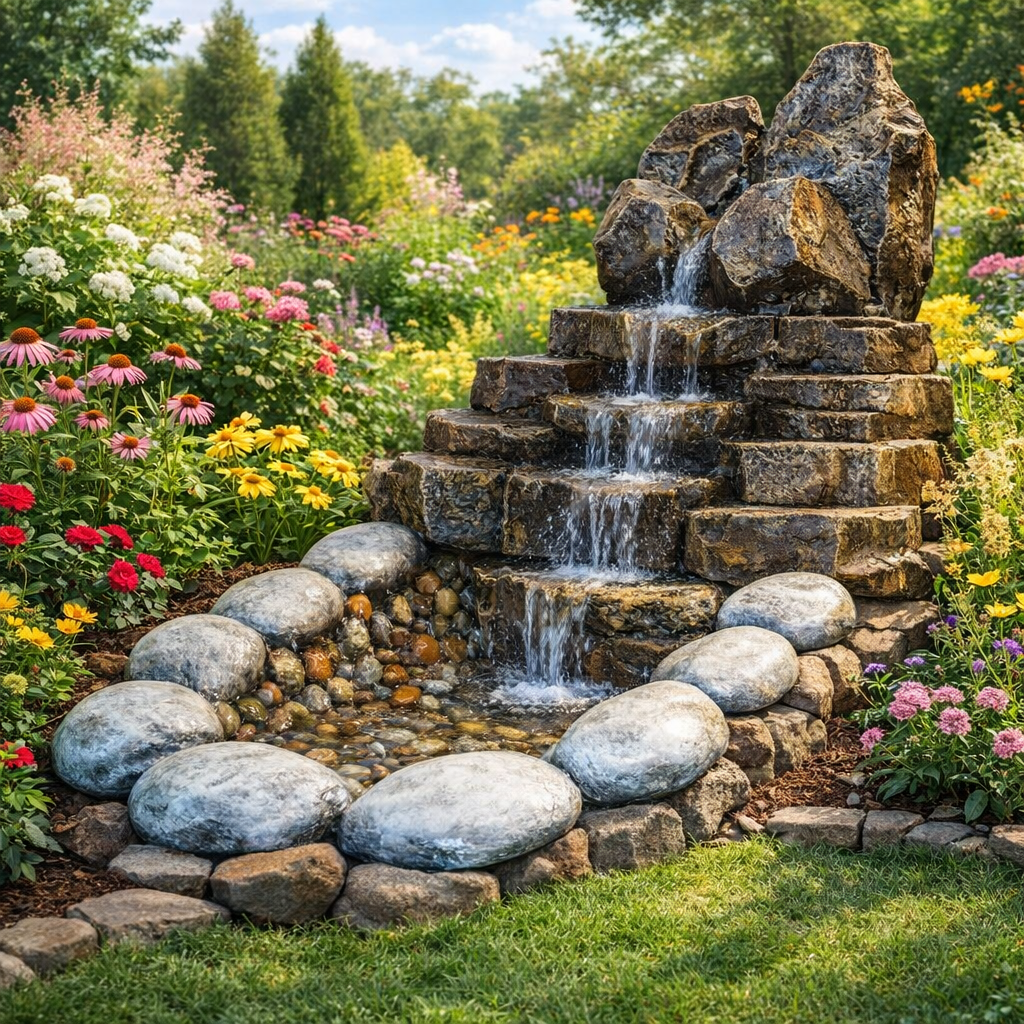 Декоративный водопад U07461 — это стильное решение для вашего садового декора, имитирующее альпийскую красоту!