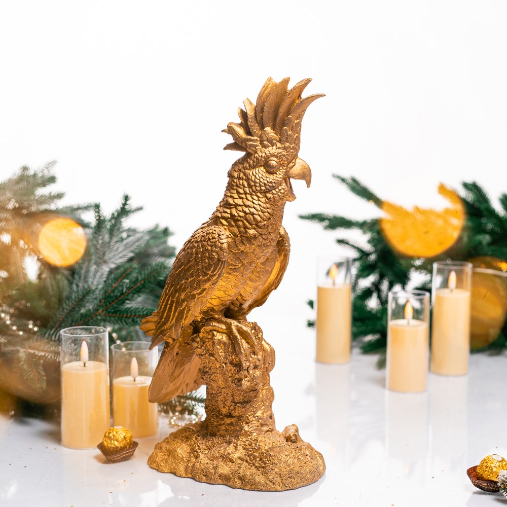 Декоративная новогодняя фигура Попугай F01241-G полистоун h=40 см
