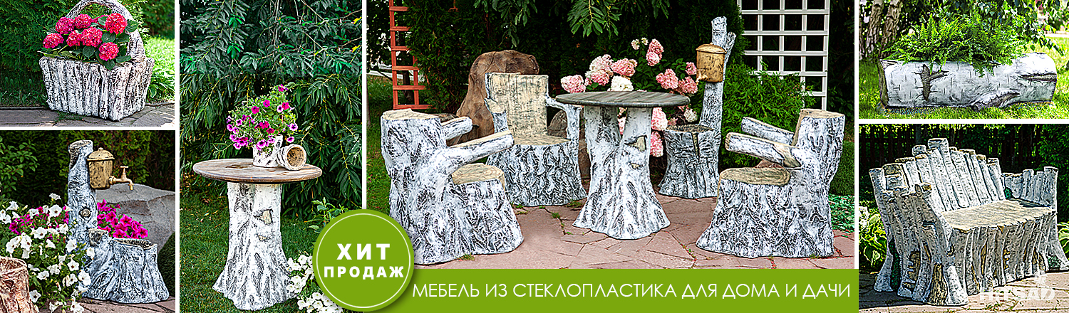 Диван Березка - садовая мебель необычного дизайна. Порадует своим видом и взрослых и детей. Материал изготовления - стеклопластик, прочный и нетоксичный материал.