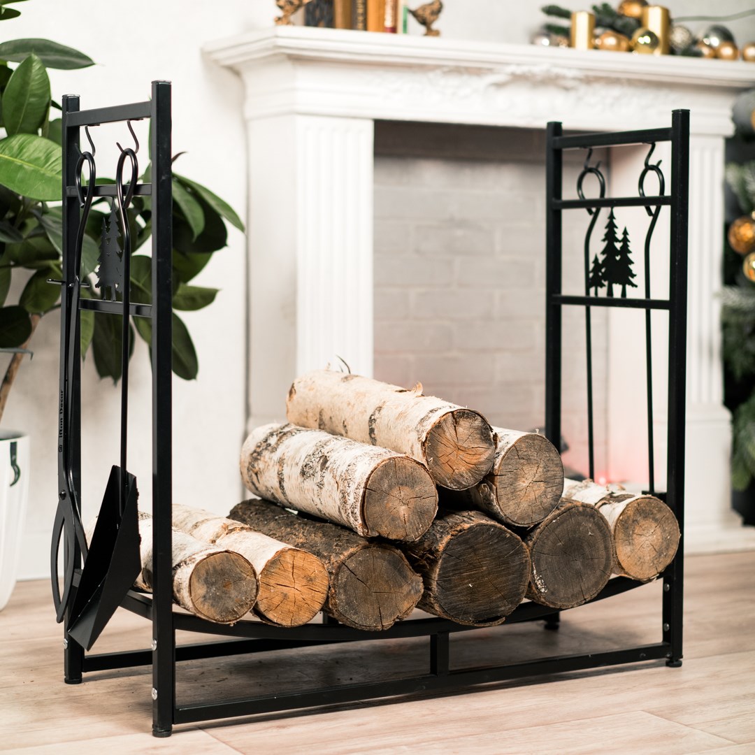 - Вмещает большое количество поленьев