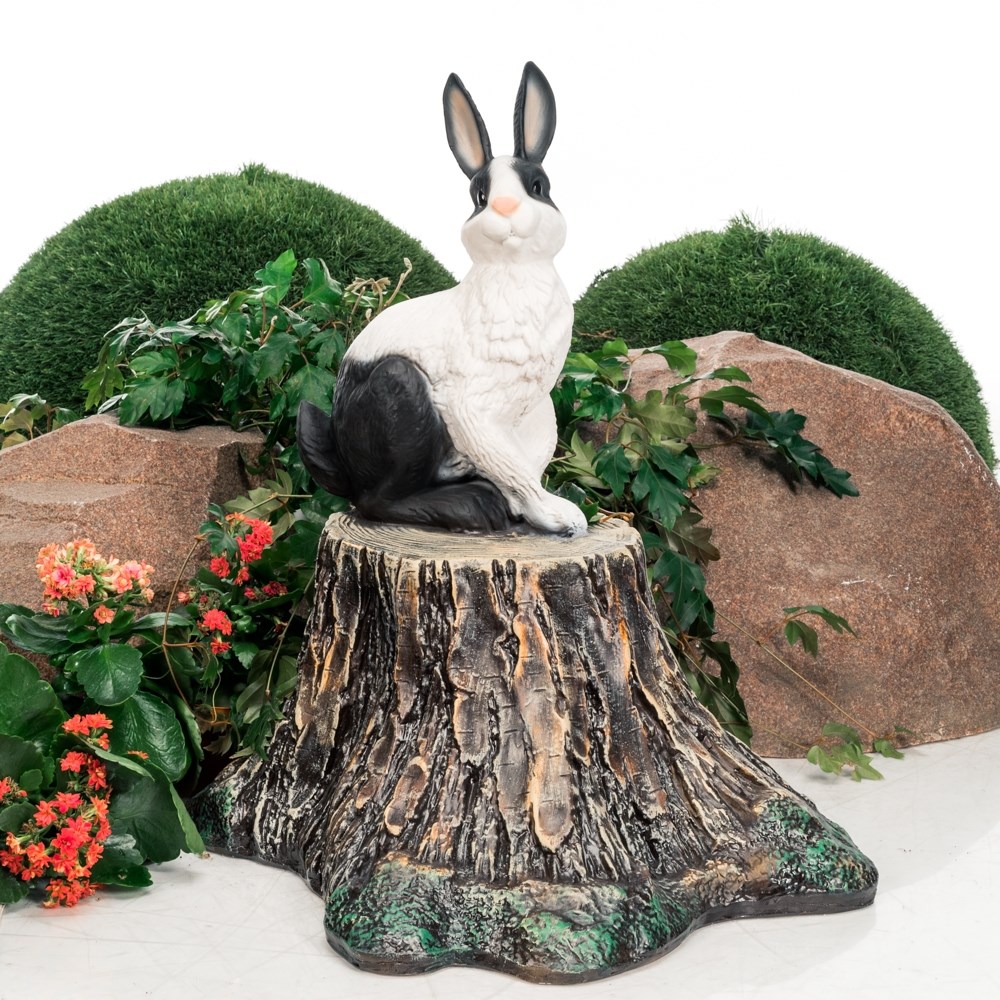 Фигура для сада Заяц на пне F07062-WBL, полистоун, белый с чёрным, 65 см