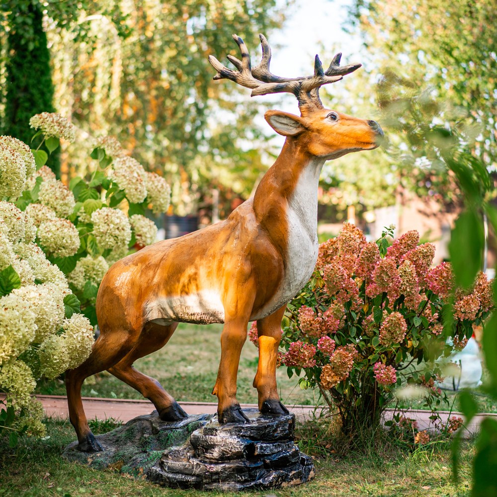 Олень - элегантный и величественный элемент декора для вашего сада, выполненный из прочного стеклопластика. Высота 154 см делает его впечатляющим акцентом, добавляя нотку дикой природы и изысканности к ландшафту. Благодаря устойчивости к погоде и лёгкости материала, эта фигура прослужит вам долгие годы, сохраняя привлекательный вид без лишнего ухода.