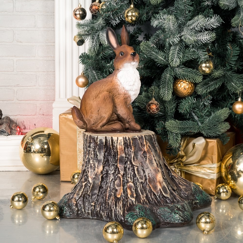 Фигура для сада Заяц на пне F07062-Br, полистоун, коричневый, 65 см