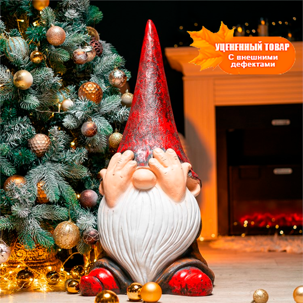- Милый дизайн гномика для создания сказочной атмосферы в саду.