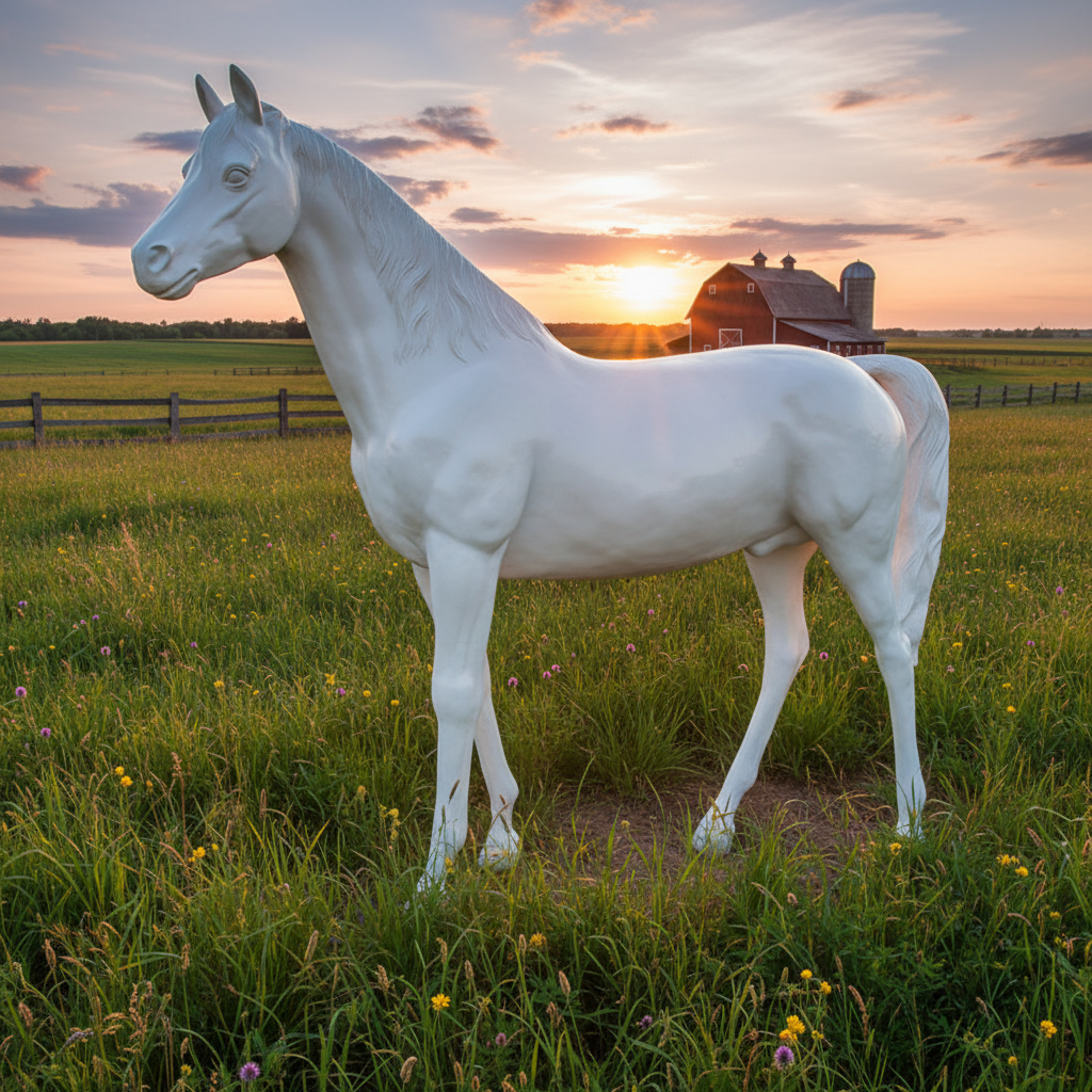 Такую фигуру коня разумно размещать у въезда на участок, рядом с дорожками, террасой или в зоне отдыха, создавая выразительный композиционный центр. Скульптура уместна в усадебном, классическом, тематическом (конюшни, ранчо) или парковом оформлении, а также в фотозонах возле кафе, гостиниц и конных клубов. Для долгого срока службы рекомендуется установить фигуру на ровное твёрдое основание и периодически очищать поверхность от загрязнений мягкими средствами, не повреждающими декоративную покраску.hitsad