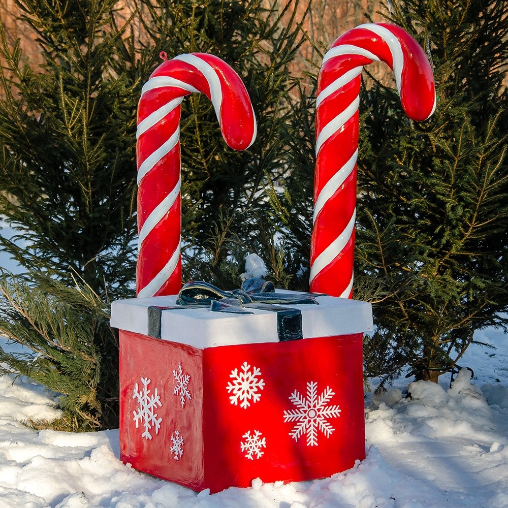 Яркая, запоминающаяся форма конфеты-трости — отлично работает в роли декоративного ориентира или тематического объекта.