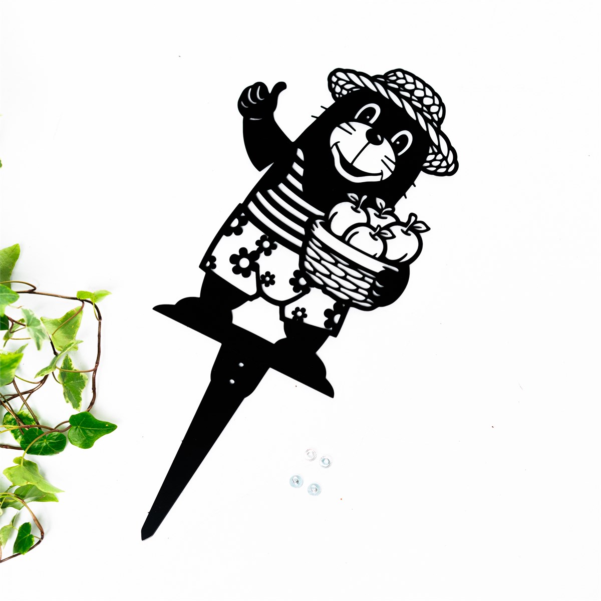 Фигура 801-297R выполнена из прочного металла и изображает крота-дачника, поэтому особенно хорошо подходит для оформления огорода и садовых композиций с юмором. Разборная конструкция удобна для хранения, перевозки и сезонной установки, а высота 40 см делает изделие выразительным, но не громоздким.