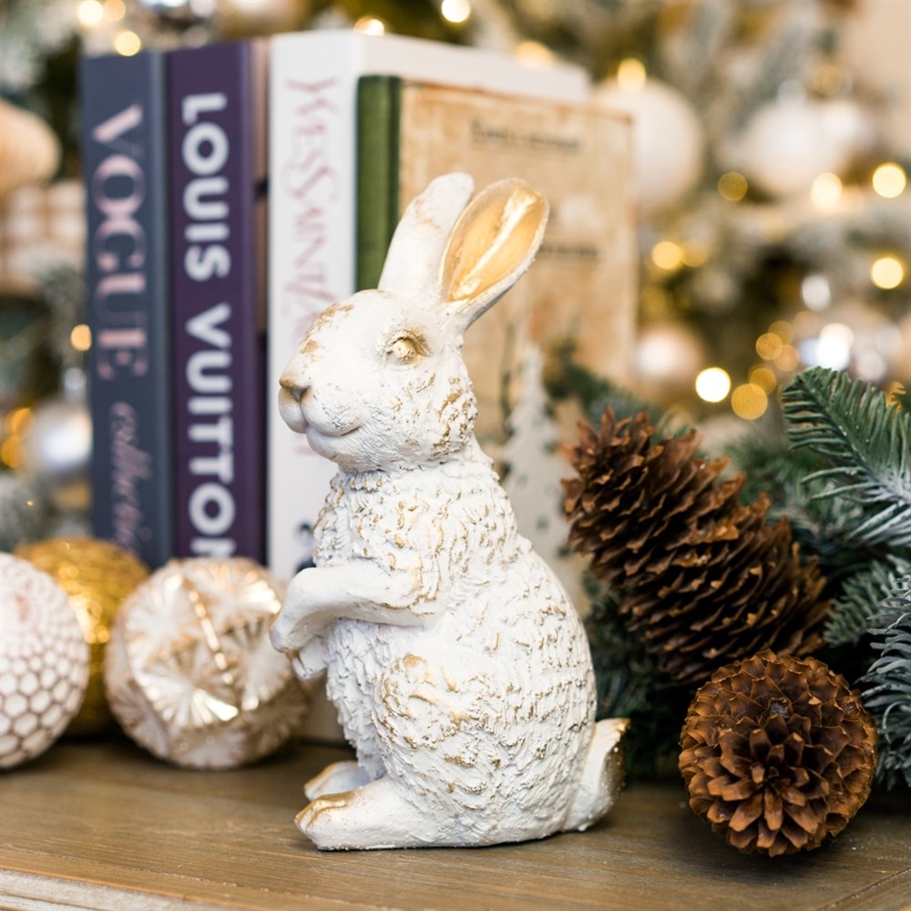 Фигура декоративная Зайчонок U09088-WG полистоун цв.белый с золотом высота 22см