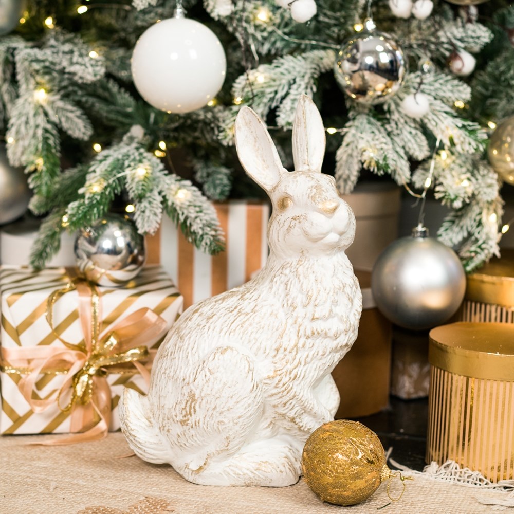 Интерьерная фигура Заяц F01007-WG полистоун цв.белый с золотом h= 38см