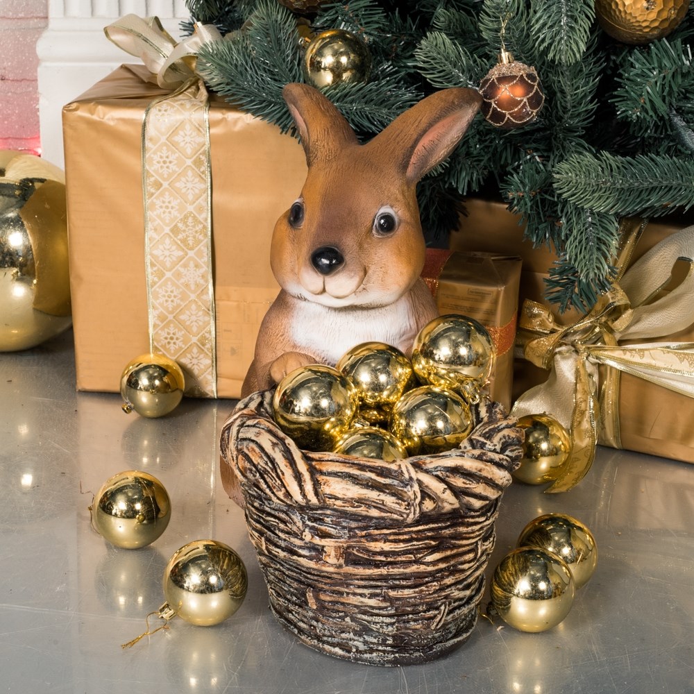 Кашпо для растений Кролик с корзиной F08759-Br, полистоун, коричневый, 34 см