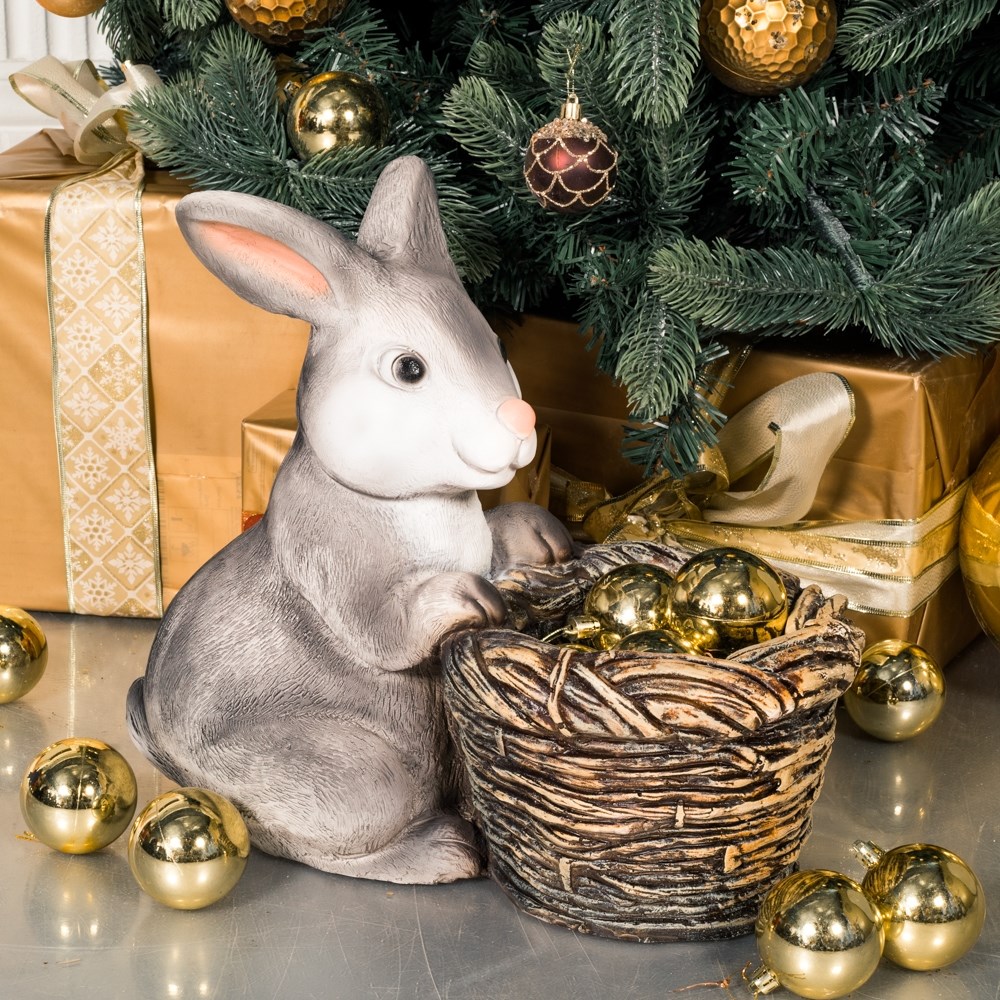 Кашпо для растений Кролик с корзиной F08759-Gray, полистоун, серый, 34 см