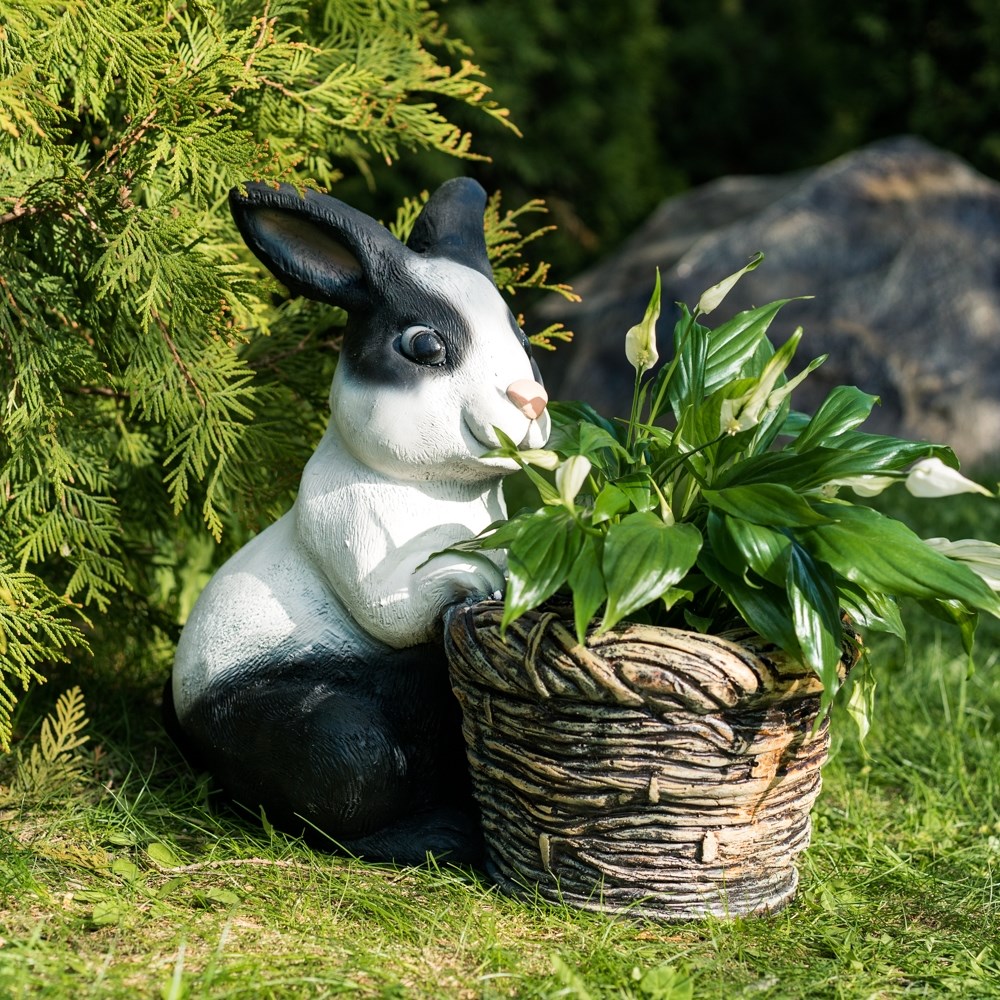 Кашпо для растений Кролик с корзиной F08759-WBL, полистоун, белый с чёрным, 34 см