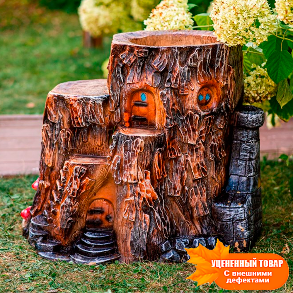 Кашпо пень Дом Гномов под лавку U07910 стеклопластик h=59 см