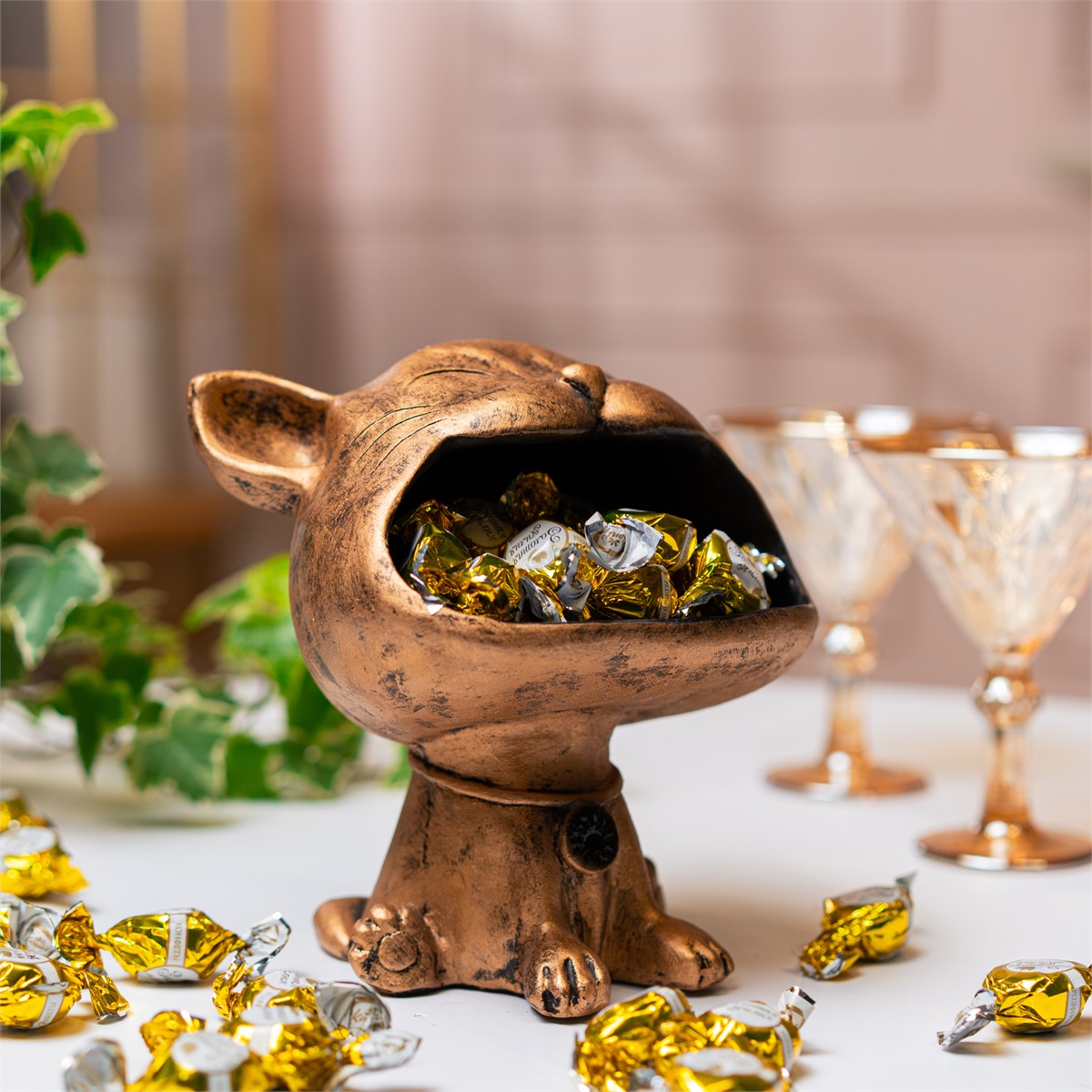 Эта очаровательная конфетница выполнена в виде симпатичного котика — идеального символа домашнего тепла и игривости. Изготовленная из прочного полистоуна, она устойчива к влаге и механическим повреждениям, гарантируя долговечность и простоту ухода. Идеально подходит для хранения конфет, печенья или фруктов, добавляя интерьеру нотку нежности и уюта.
