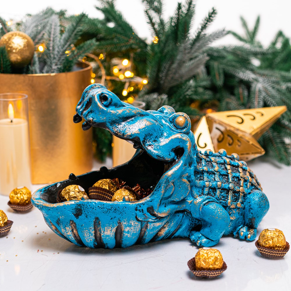 Оживите свой стол с конфетницей «Крокодил» U09420 — пусть сладости всегда будут в надёжных "челюстях"! 🌿✨