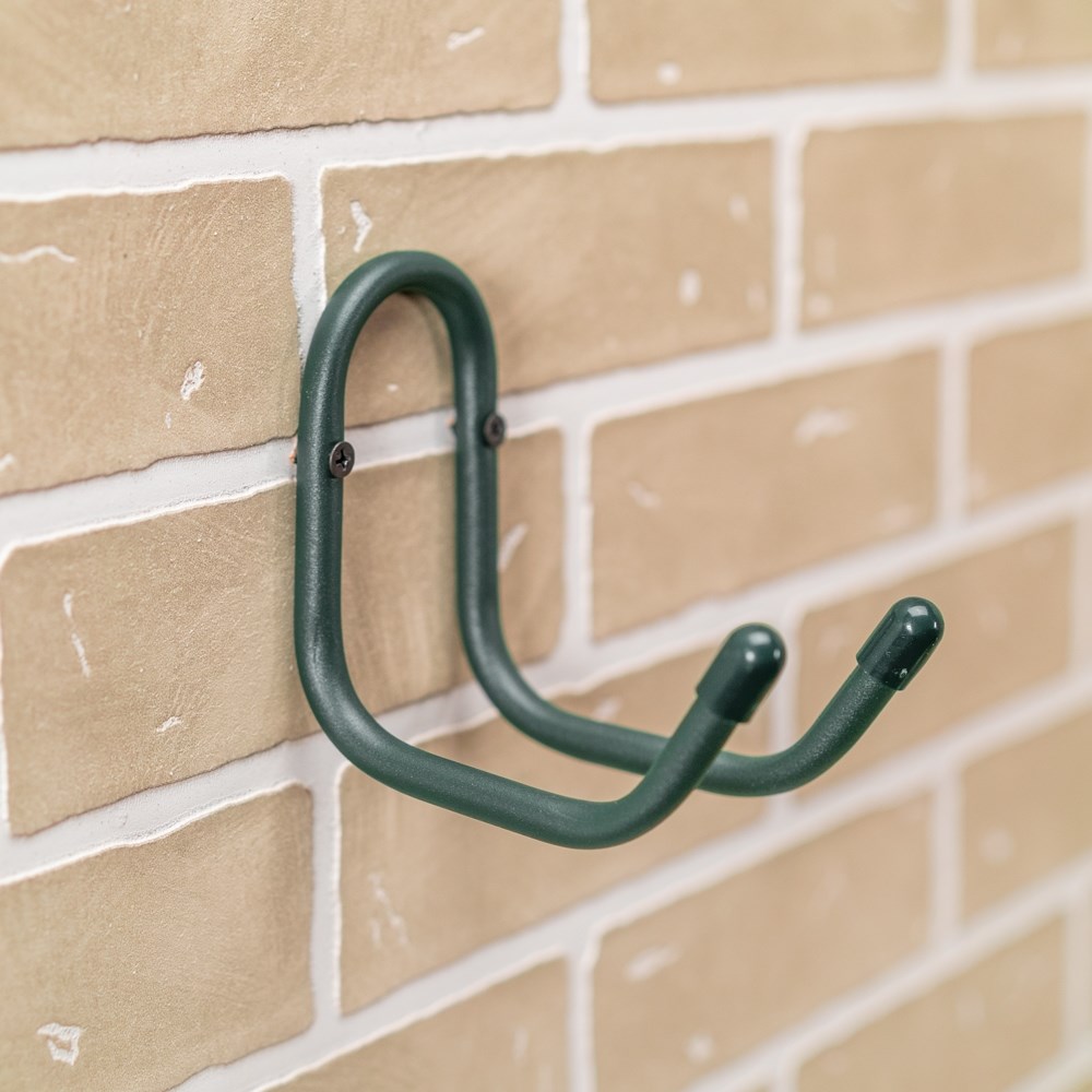 Металлический настенный кронштейн решит проблему безопасного и компактного хранения садового инвентаря.