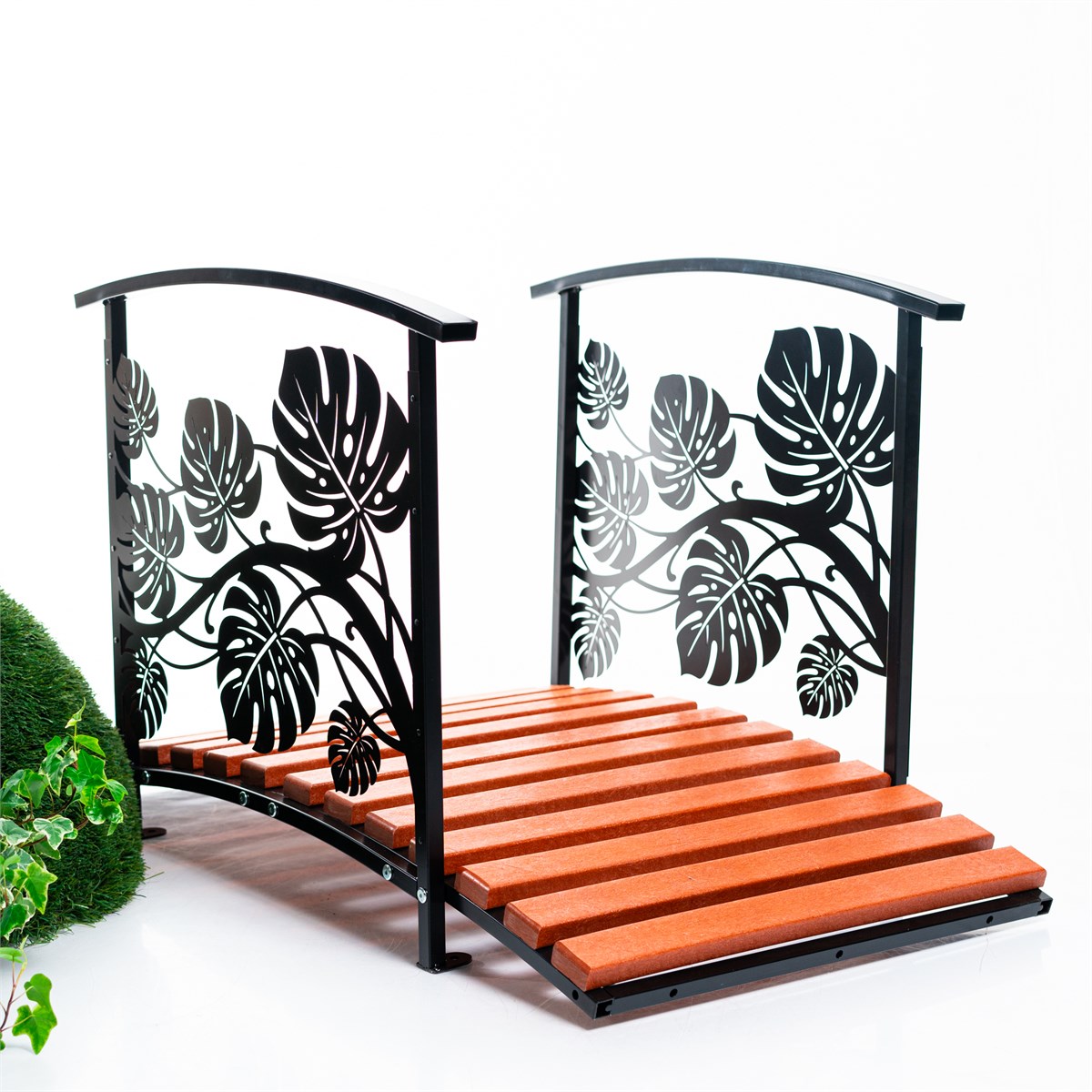 Мостик декоративный разборный Листья Монстеры для сада 303-008R-B металл и ДПК L=110 см