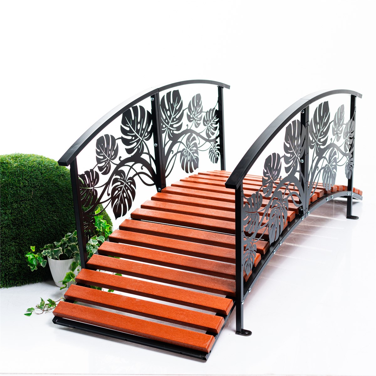 Мостик декоративный разборный Листья Монстеры для сада 303-006R-B металл и ДПК L=162 см