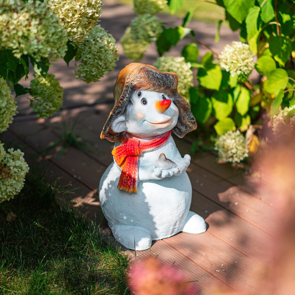 Новогодняя фигура Снеговик с птичкой непременно создаст атмосферу праздника для вас и окружающих. Материал изготовления-полистоун. Фигура устойчива к морозу, снегу или дождю. Благодаря высокому профессионализму мастеров, садовая фигура Снеговик с птичкой будет радовать Вас много лет. После праздников фигуру Снеговик с птичкой необходимо очистить от грязи и пыли и убрать до следующей зимы.