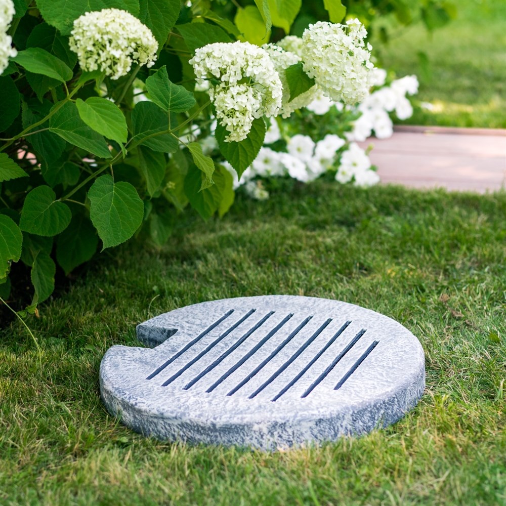 Имитация бетонной поверхности подчеркивает современный или промышленный дизайн ландшафта, обеспечивает защиту от влаги и грязи. Изготовлен из прочного стеклопластика, устойчивого к погодным условиям и нагрузкам.