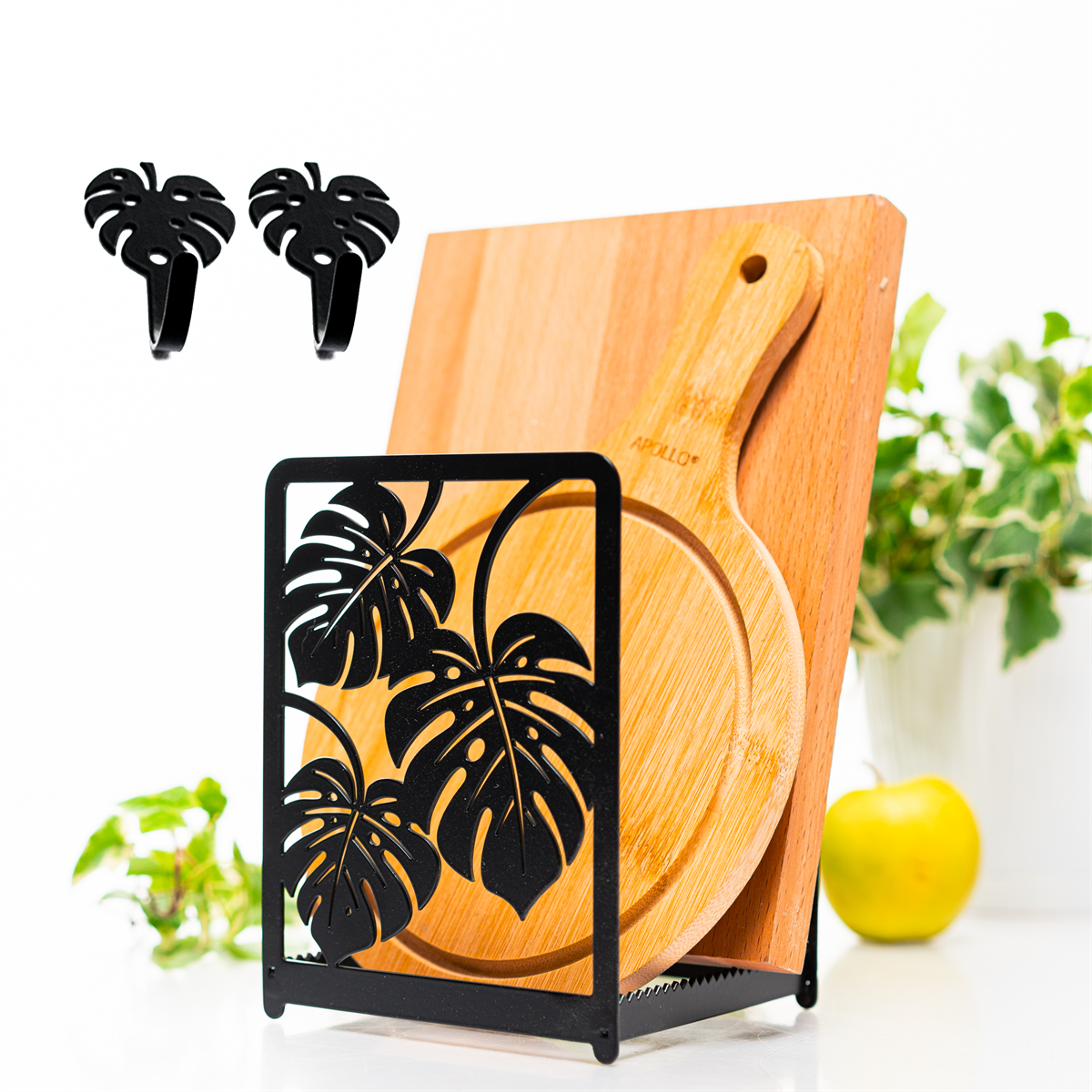 Подставка для разделочных досок с 2-мя крючками Листья монстеры 300-245 металл 300-245B