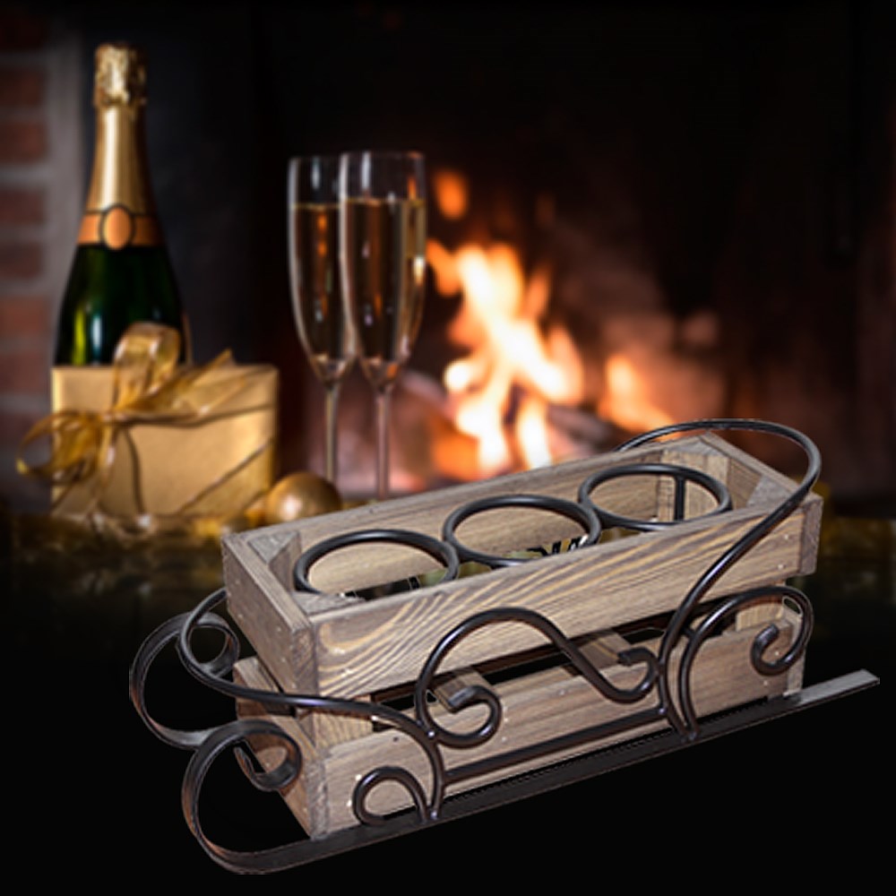 Подставка для бутылок 59-103 практична и устойчива. Предназначена для размещения трех бутылок. Изготовлена в виде сказочных саней. Состоит из металлического основания и деревянного ящика, в котором располагаются бутылки. Цвет ковки - черный. Материал ящика - сосна. Благодаря нестандартной форме и декоративным элементам подставка для бутылок поможет придать любому ужину изысканность и шарм. Купить подставку для бутылок с доставкой по России вы можете оформив заказ на нашем сайте.
