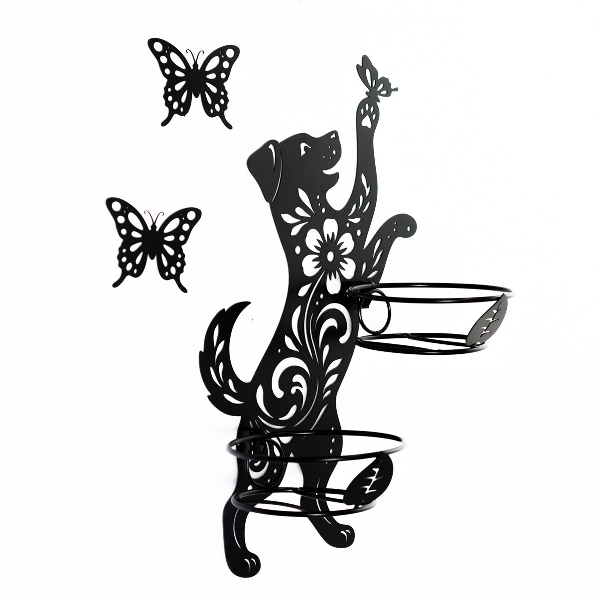 Подставка настенная для двух растений Собака с бабочками 150-239R со съёмными корзинами d=12 см