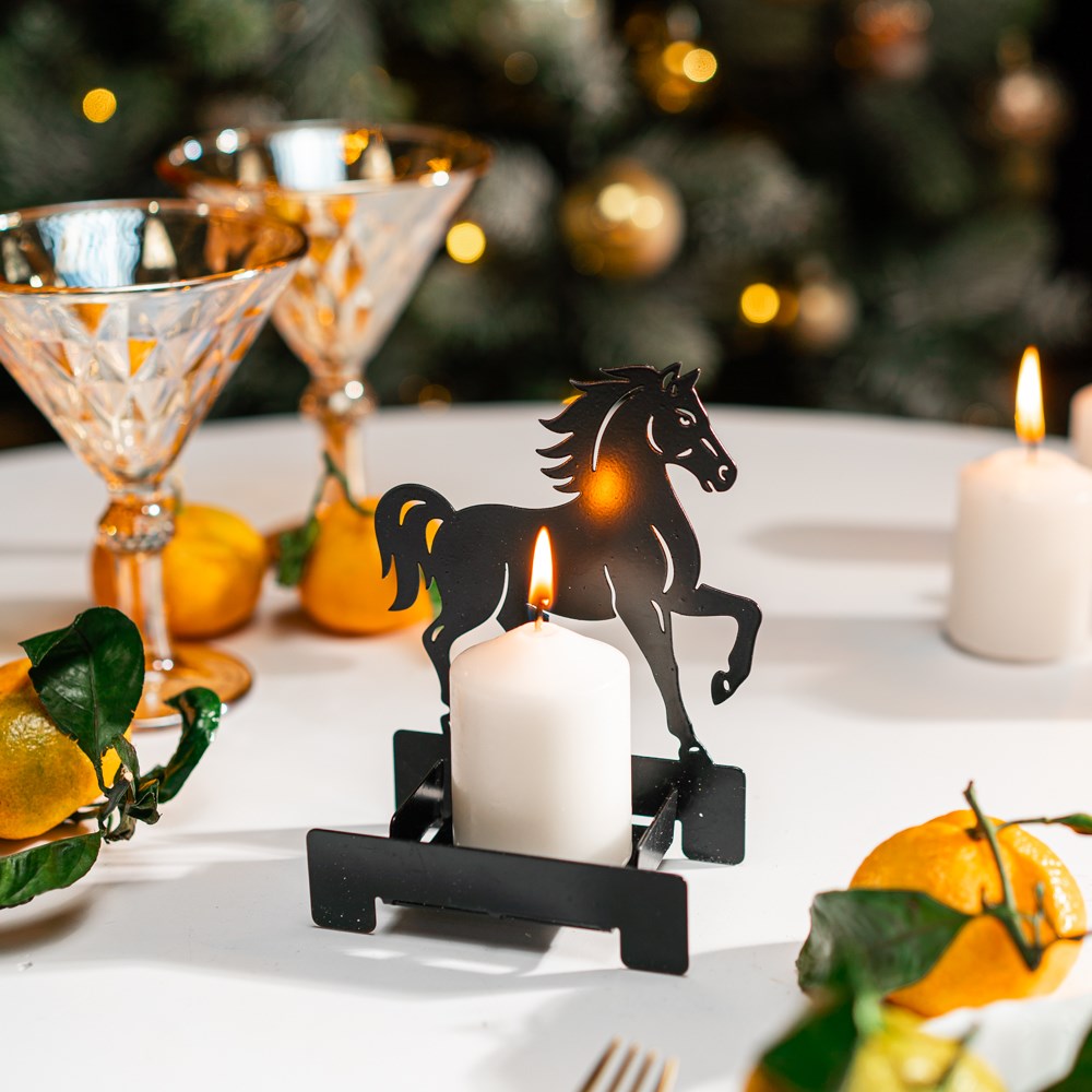 Принесите удачу и праздничное сияние в свой дом! Металлический подсвечник в форме Лошади – символа года по восточному календарю – модели 730-091 станет элегантным украшением вашего новогоднего интерьера. Идеален для камина, стола или подоконника, где он создаёт тёплую атмосферу и наполняет пространство магией праздника.