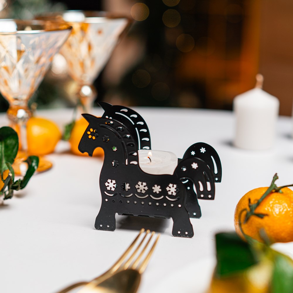 Принесите удачу и праздничное сияние в свой дом! Металлический подсвечник Лошадка – символ года по восточному календарю – станет элегантным украшением вашего новогоднего интерьера. Идеален для камина, стола или подоконника, где он создаёт тёплую атмосферу и наполняет пространство магией праздника.