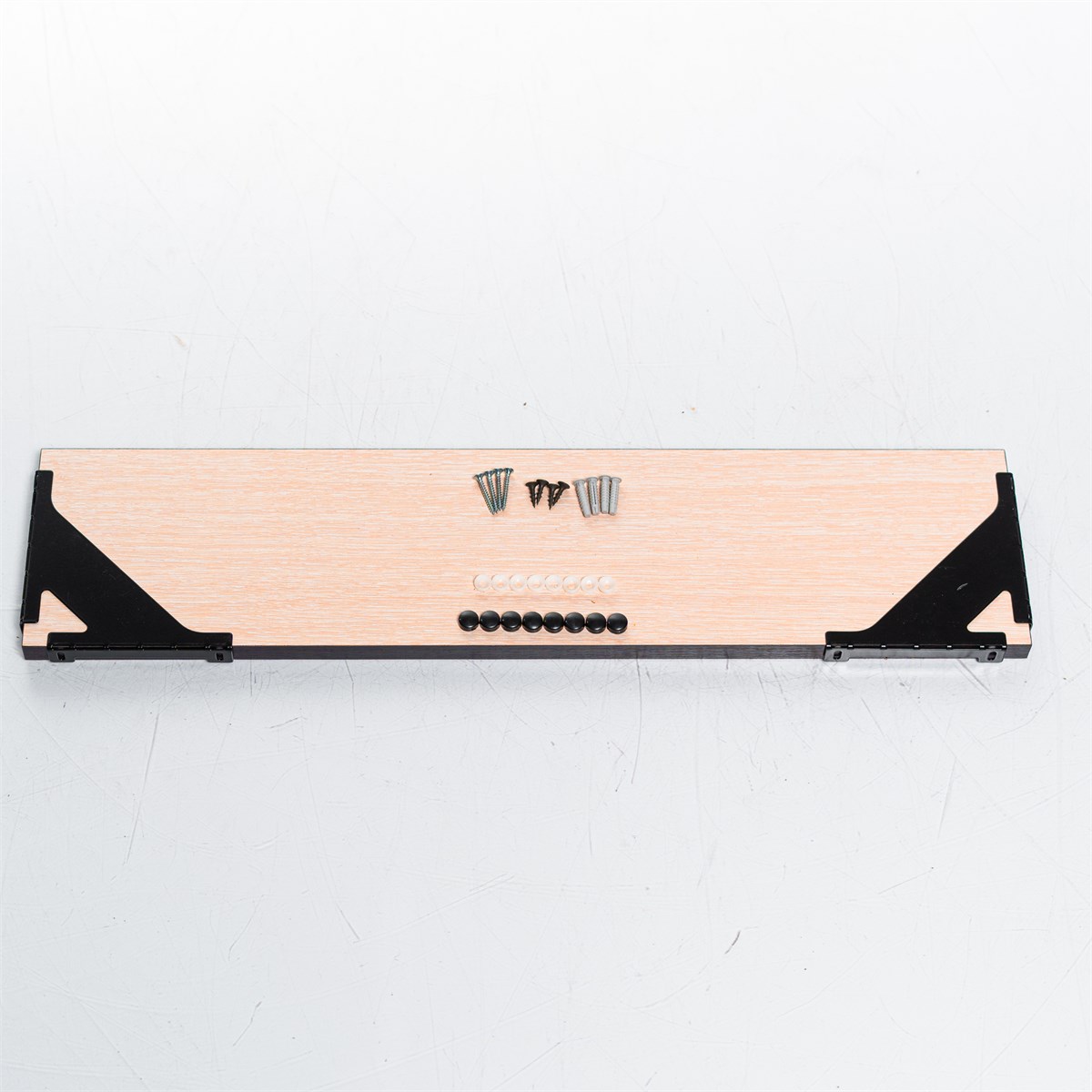 - Прочность и долговечность: Металлические кронштейны надёжны, устойчивы к коррозии и деформациям. ЛДСП защищено от царапин, влаги и выцветания, обеспечивая долгий срок службы без потери вида.