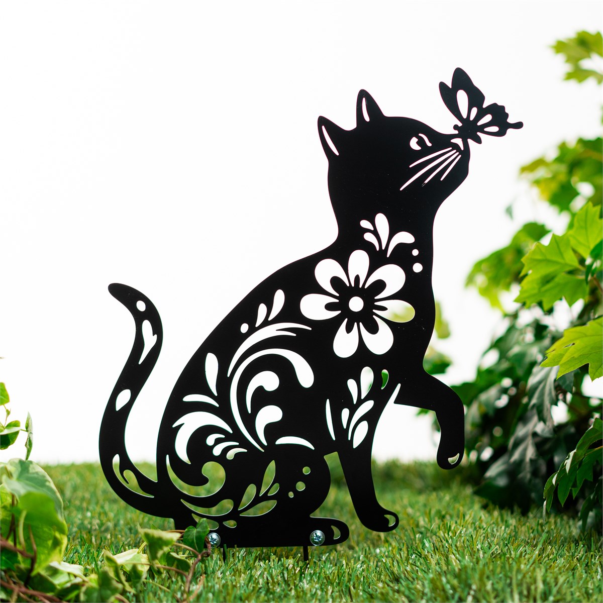 Декоративная разборная фигура для сада Кошка с бабочкой 801-500R h=30 см металл