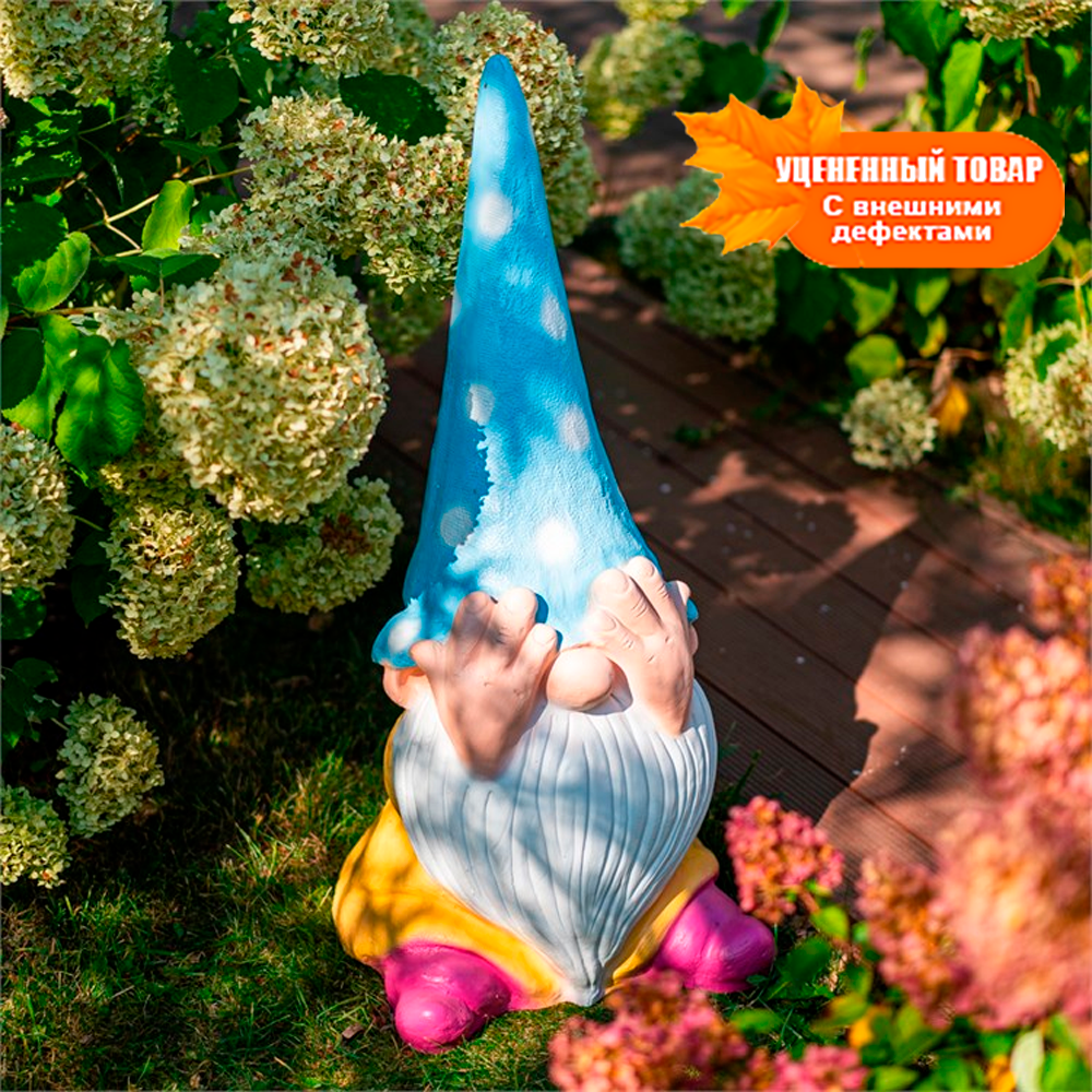 Сказочная фигурка Гном для украшения садового или дачного участка арт. F08369-Bl. Фигура изготовлена из лёгкого и особо прочного материала - полистоуна. В комплекте с другими садовыми фигурами гномов можно создать целую композицию.
