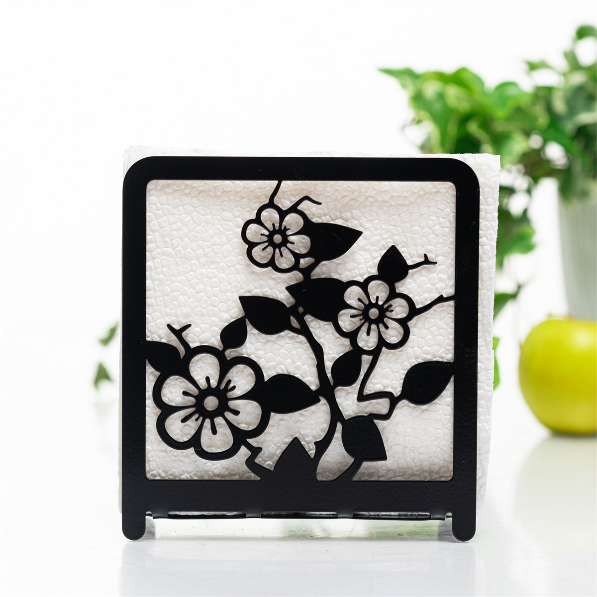 Салфетница изготовлена из высококачественного металла с матовым порошковым покрытием, устойчивым к коррозии, царапинам и влаге. Вдохновлённая цветением сакуры, модель украшена тонкой гравировкой лепестков, создающей уютную, почти живописную атмосферу. Идеальна для хранения кухонных или гостевых салфеток — превращает обычную вещь в элемент декора.