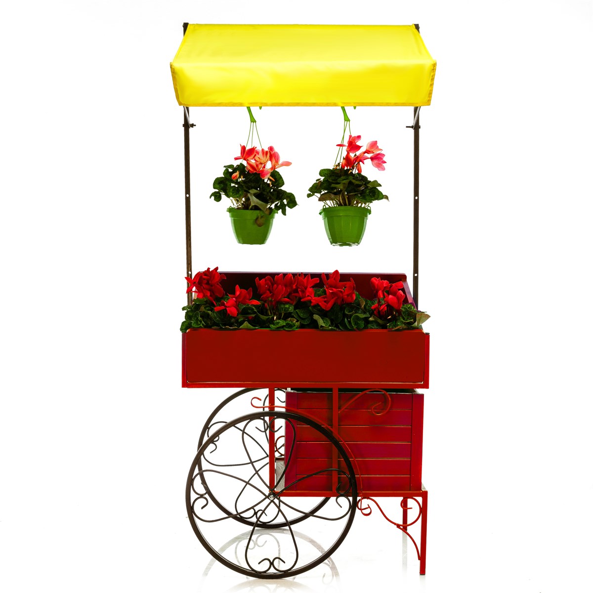 Модель мобильна на колёсиках, легко собирается без инструментов. Идеальна для цветочных магазинов, кафе, рынков или садовых центров как POS-стенд. Яркий дизайн в ретро стиле повышает продажи за счёт удобного доступа к товарам.