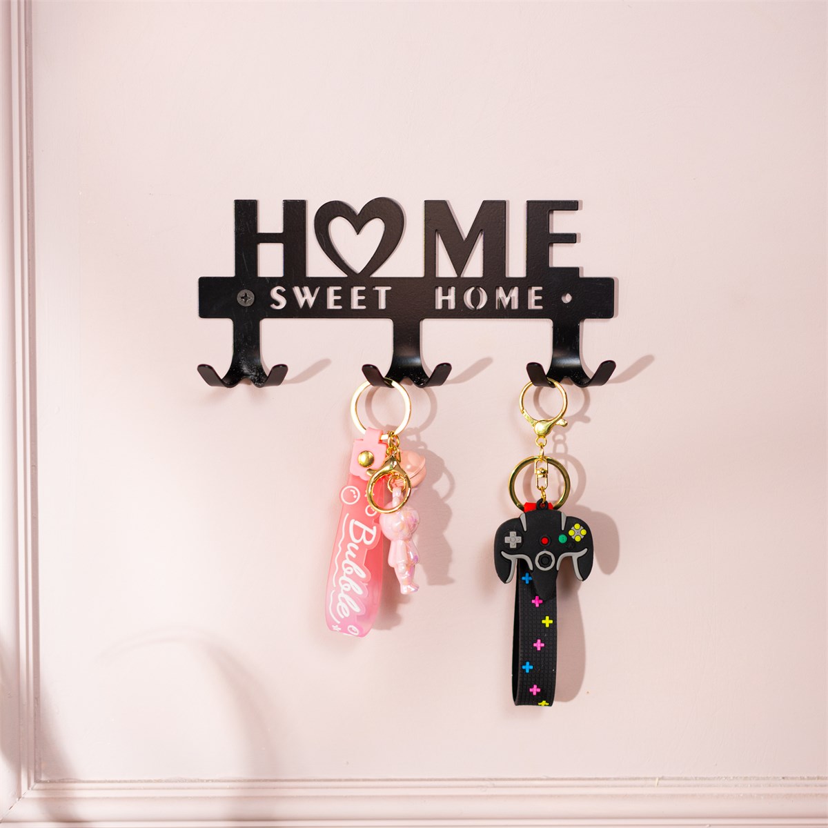 Вешалка 701-060 выполнена из металла с матовым чёрным покрытием, устойчивым к коррозии и царапинам. Декоративная панель с надписью "Sweet Home" создаёт дарит тепло и уют, три двойных загнутых крючка удобно размещают куртки, шарфы, ключи или полотенца. Ширина 20 см идеальна для компактных пространств.