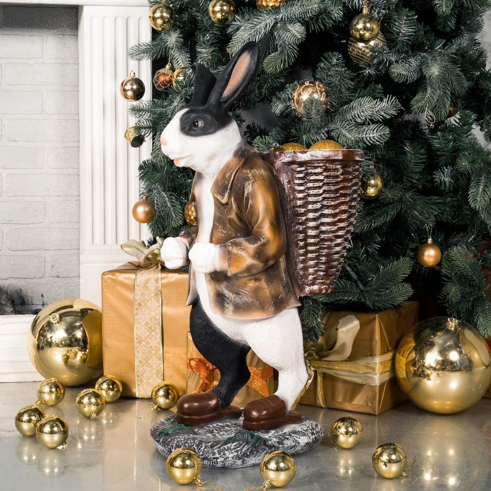 Декоративное кашпо Заяц с корзиной, арт. F01042-WBL